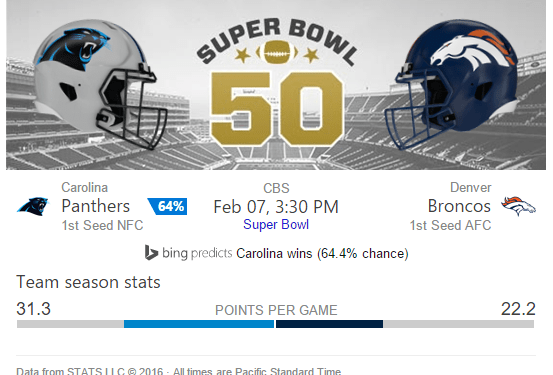 Now that the NFL regular season is over, Bing Predicts has turned its attention to Super Bowl 50. At the…