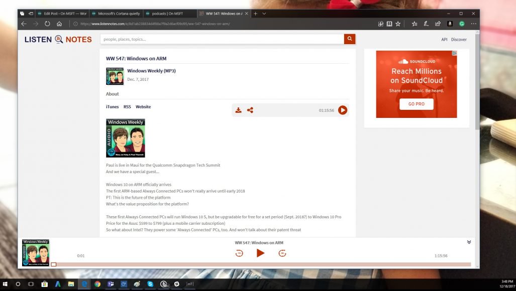While a large portion of people are waiting on iTunes to hit the Windows Store before making the leap to Windows 10 or Windows 10 S, I find each passing day developers are adapting to the web in new and creative ways. In its current form, Listen Notes stands as the Google of podcasts and that’s a great thing for Windows 10 and 10 S users as Microsoft shifts its focus to filling gaps in its first-party solutions with better served progressive web apps.