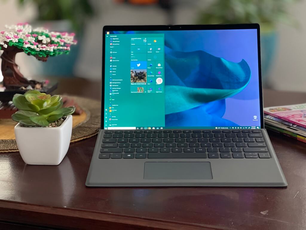 Visually, this Dell 2-in-1 is nearly identical to the Surface Pro X, with the exceptions being that the kickstand is a little thinner, and aluminum being used over magnesium. Dell also leaves a notch at the side of the kickstand so it’s easier to pull out. Even the display is quite the same, with slim bezels along the top and the sides (we get more into that later.) Dell says the display is 10% thinner over previous generations, thanks to an 84% screen-to-body ratio.