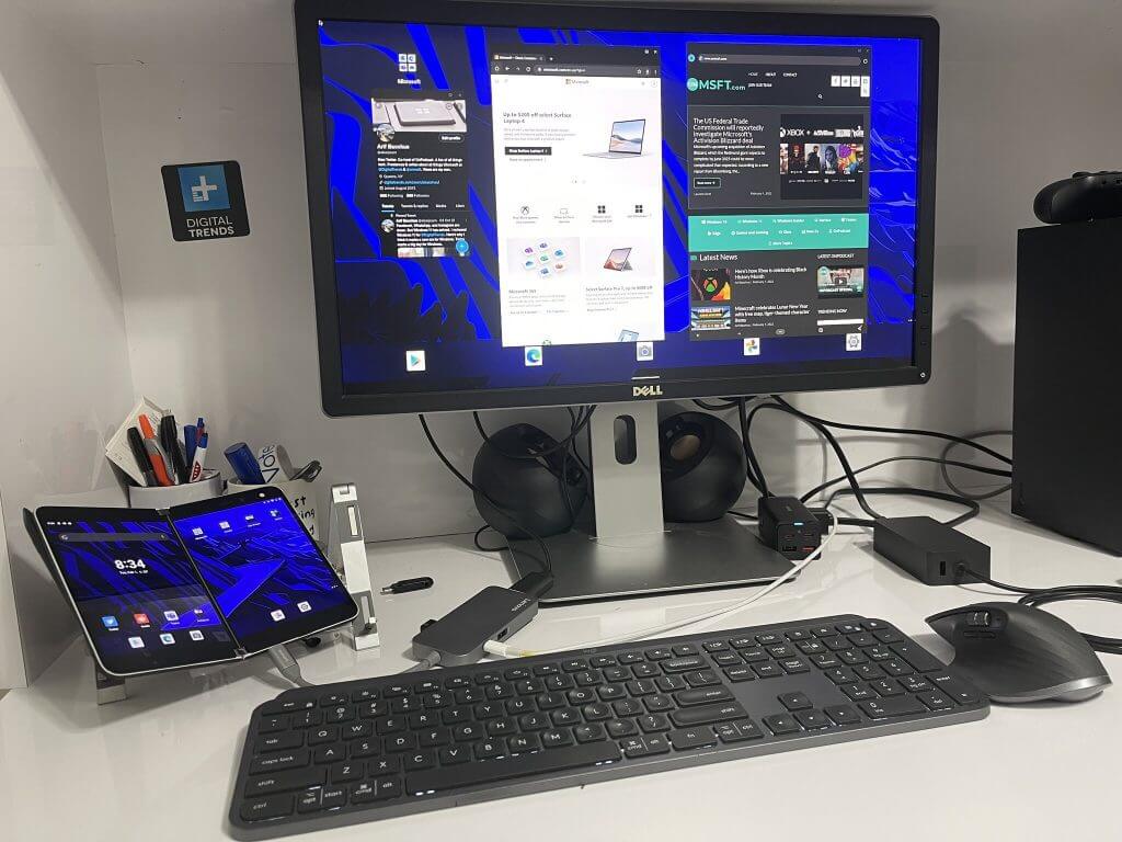 One of the best selling features of the Surface Duo is how it can boost your productivity. Having two screens means you can do more at once, but what about when you’re at home and near an external monitor and want to add a third?