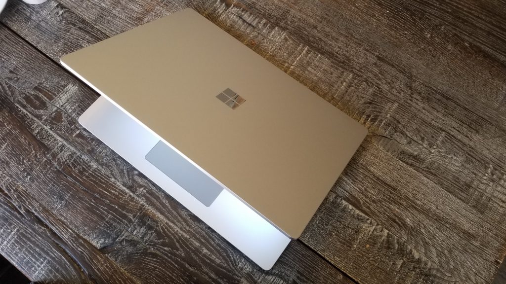 I also want to mention that the Surface Laptop 3 has a beautiful sloped design when it’s closed shut. It goes from thick in the back to thin in the front. There’s even no notch in the front of the chassis of the laptop. The corners of the display are also rounded and are an absolute pleasure to touch. Oh, and thanks to the use of magnets, opening the lid is quite easy with just one hand. That’s something that you can’t quite do on a MacBook or other laptops.