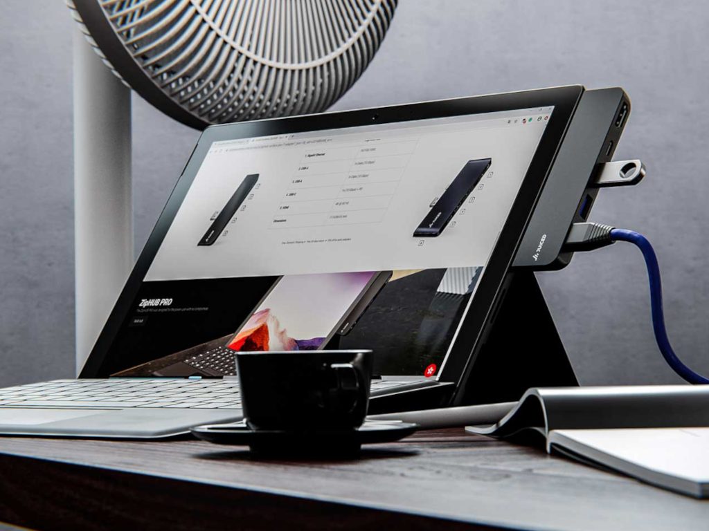 With both support for HDMI 4K @ 60Hz and USB-C 3.2 Gen 2 with 10 Gbps, I was able to usher aside my dependency on my Surface Dock and use the much more portable ZipHUB Pro. While the custom design is great for aesthetics, it should be noted its proximity to the adjoining Surface Pro 7 ports, peripherals with short cables may need a second consideration when choosing the ZipHUB Pro.