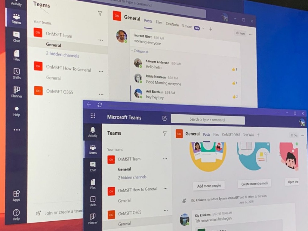 Next up are the chat and collaboration features. The biggest one here is pinned posts. With this feature, you can pin a message in a channel, so that it appears in the channel information pane for everyone to see. There are also some little things, too. This includes a new offline presence status, language-aware proofing, templates for creating a new Team.