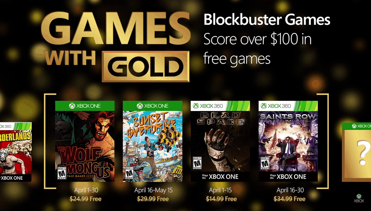 The April titles include The Wolf Among Us and Sunset Overdrive on the Xbox One plus the Dead Space and Saints Row IV Xbox 360 games. Let’s go into more details below: