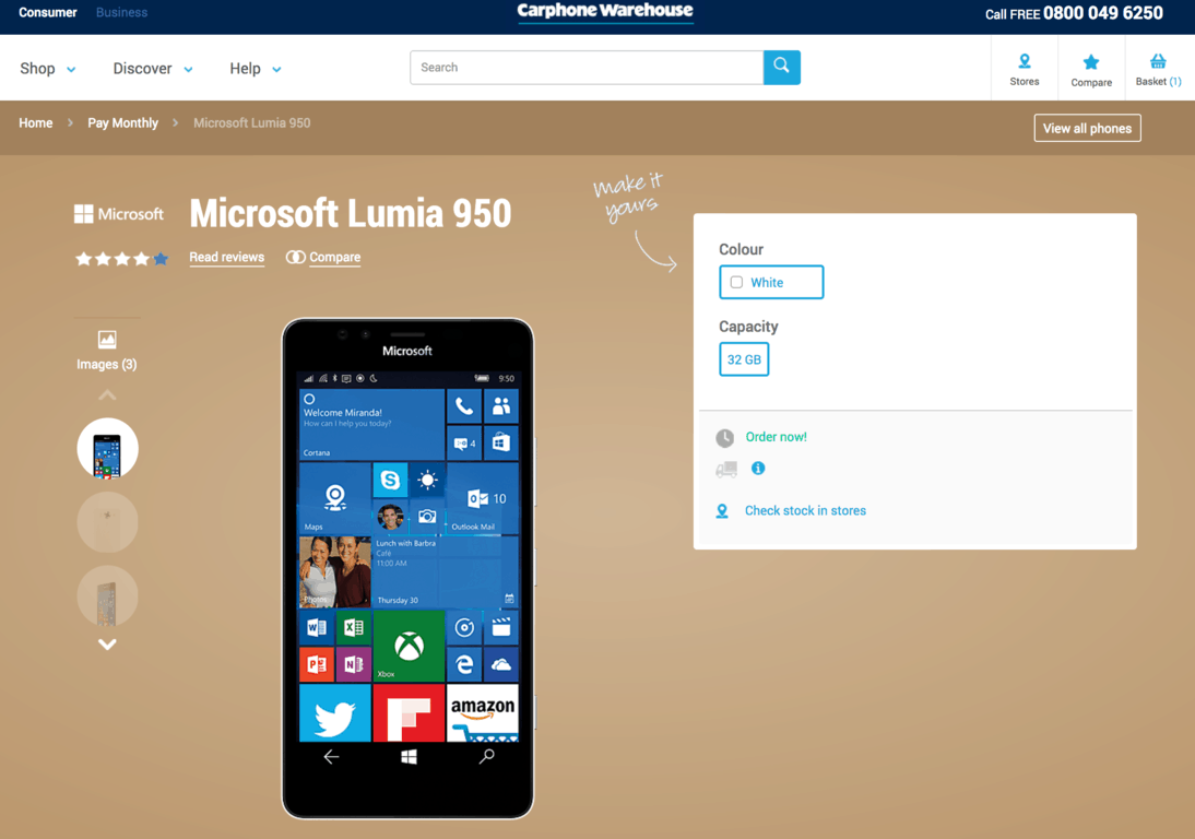 \n\nFurther reading: Carphone Warehouse, Lumia, Lumia 950, UK