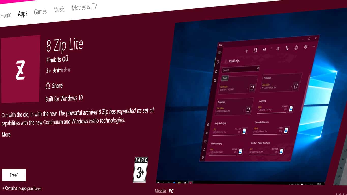 So, what is the advantage of 8 Zip compared to tools like WinRAR (which is also paid), or 7zip (which is free)? The biggest difference is that 8 Zip is a part of the Universal Windows Platform and runs on your tablet and phone. The interface is well suited for touch devices, which may be the app’s main selling point.