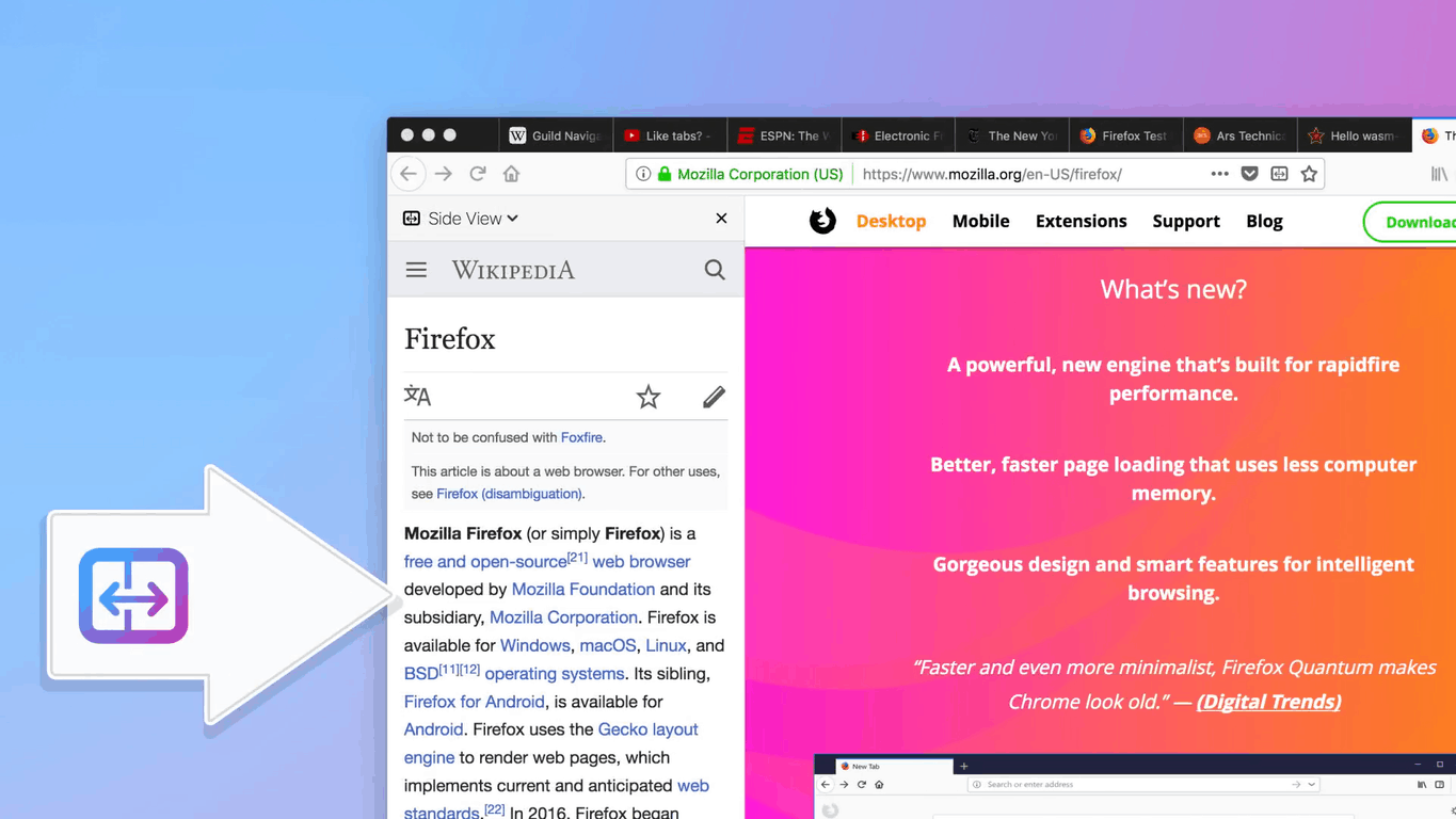 As the name of the feature suggests, Side View lets users open up two websites side by side in the same window. Pressing on the Side View button (or right-clicking on a link and selecting the option) opens up a mini version of a website in the Firefox sidebar. This actually opens up the site in a mobile view by default to keep things compact, but users can also toggle the desktop version if need be.