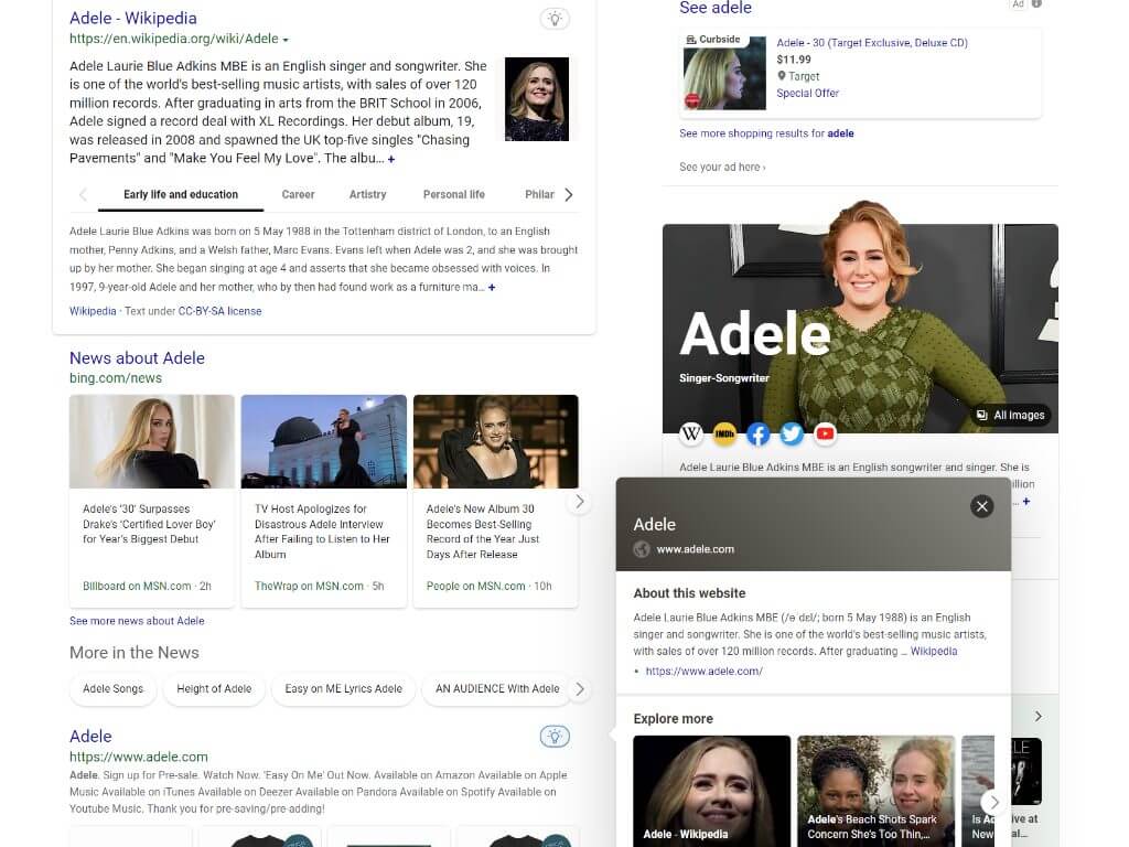 There is an Explore More section that bundles even more information where users can further explore related content.