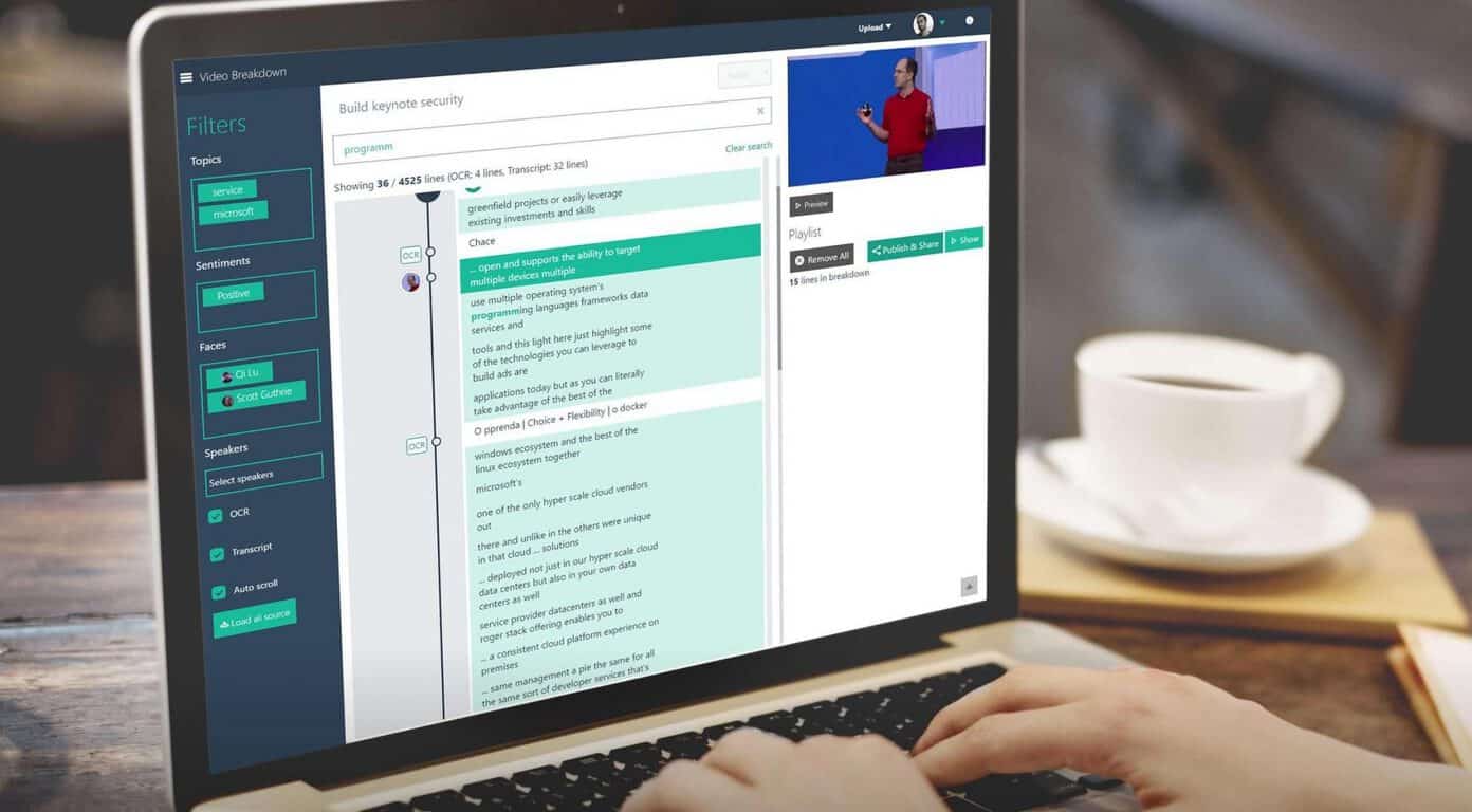The project is called Video Breakdown, and it’s a fascinating website that performs cognitive breakdowns of videos, analyzing their tone, keywords, and more. The site is full of videos now – ranging from motivational speeches to keynotes given by Microsoft executives – that have all been broken down in order to break their contents down into data. One of the most noticeable metrics, for instance, is how each video is broken up into positive, negative, and neutral tones. Some of the motivational videos, for instance, are more positive than the relatively neutral keynotes.
