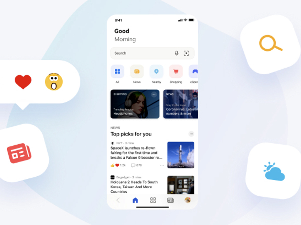 The new design brings it more in line with the current look of the Bing app which has been sporting the new aesthetic for a while now on iOS and just revamped on Android earlier this week. The new Microsoft News app UI makes better use of space between icons and other content and also adds weather data, a new Bing search bar, and a more prominent focus on Microsoft Rewards.