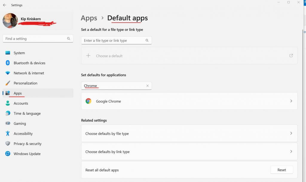 Then, to set your default browser to Chrome or Firefox or …., open the Settings app (you can use Windows key + i), click on Apps, then Default Apps, and under “Set defaults for applications,” type in the name of your preferred browser (making sure that you have it installed). Click on the listing for the browser, and choose Set default.