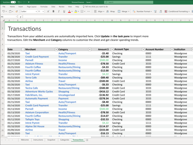 - Open the Excel template and follow the on-screen instructions to link your bank accounts.