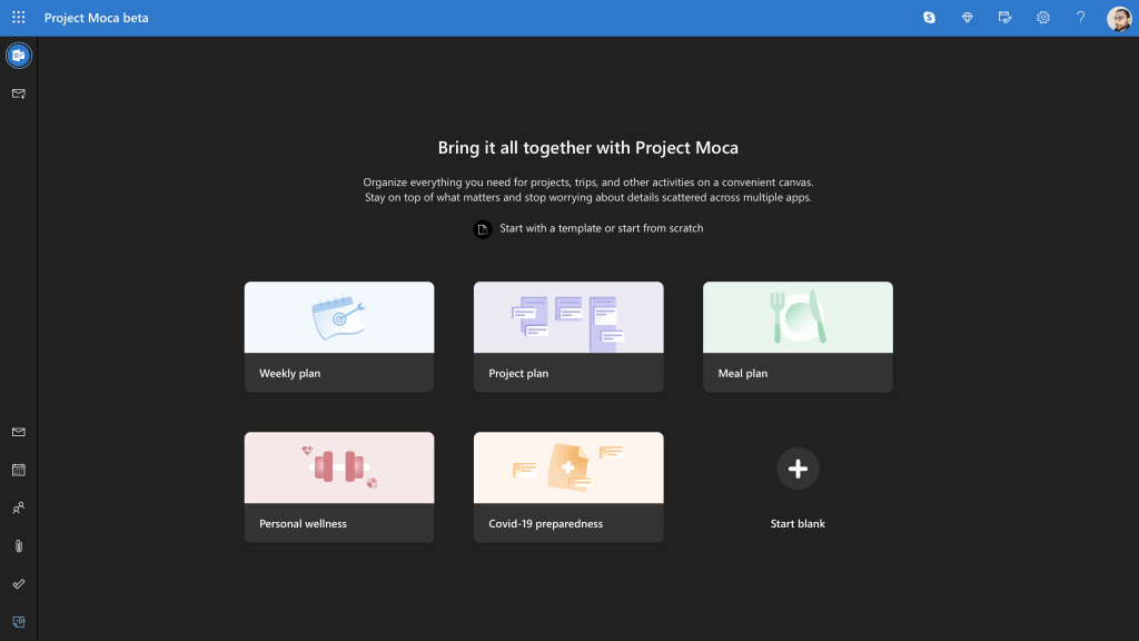 Outlook Spaces allows you to create a customized plan from scratch, or you can use the built-in templates to create one. In addition, the web app lets you name your plans, add project-related keywords, drag your content into buckets, and add up to three people collaborating on that project.