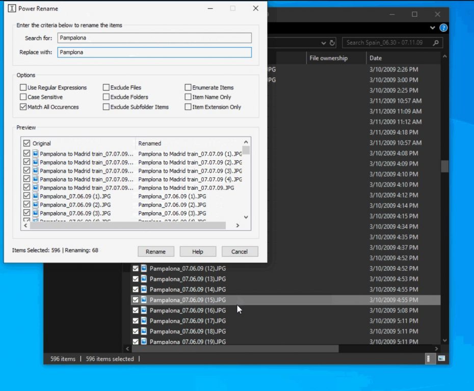 For extra comfort, there’s also a preview area to show how items will be renamed. Specific options to remove or exclude certain things from the rename operation are available too. Other options available from PowerRename include the following.