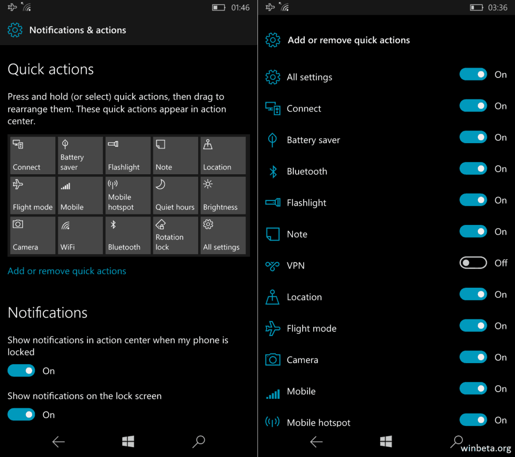 Furthermore, internal builds now allow you to add and remove quick actions as you please, meaning users can now select only a specific amount of quick actions that they want to show up in Action Center, instead of having all of them display even if you don’t use them. This too should help make the Action Center more personal.
