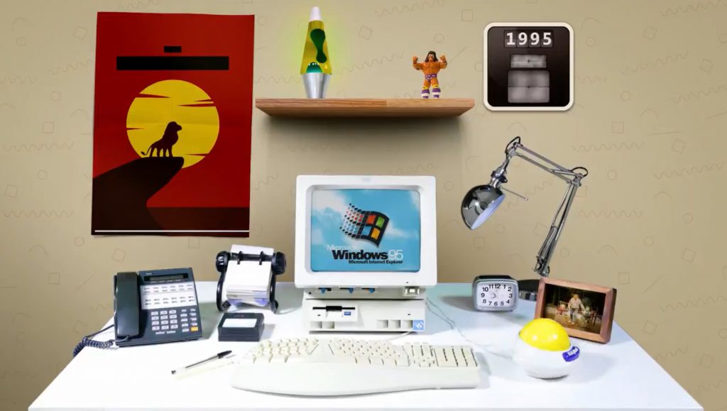 Anyway, the video starts off with the text “Everything we’ve done, we’ve done together” appearing on the screen of an old-school DOS-era IBM PC. The video then transitions out to shots of various desktop PCs from the past decades, including Windows 95, Windows Vista, Windows XP, and Windows 8 and 10 systems. We even see items on the desk in the video change between shots and decades. That includes a rotary telephone, Rubik’s Cube, Casio watch, camera, and more. There are even appearances of floppy disks, HoloLens, and the Surface Studio towards the end of the video. Posters and items on the wall change, too.
