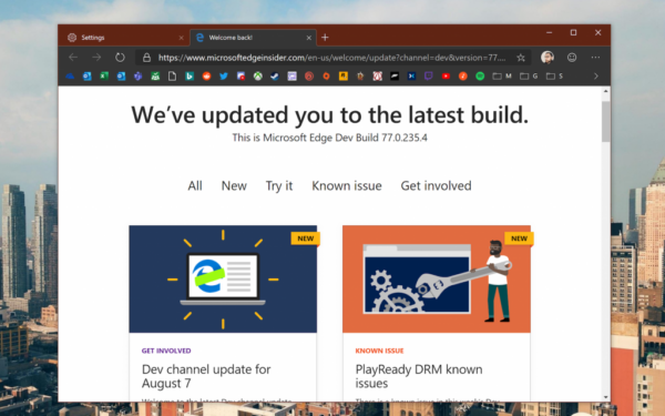 Microsoft’s latest Edge Dev build (78.0.244.0) adds light and dark theme improvements