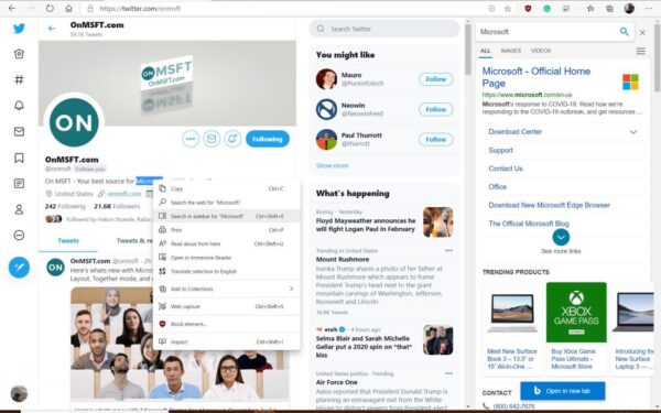 PSA: The “Search in Sidebar” feature is now live in Edge production, letting you see web results to the side of the page