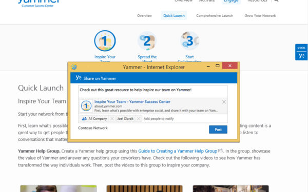 You have probably noticed share buttons on websites; the common ones are Facebook, Twitter, Reddit, and Google Plus. Now Yammer…