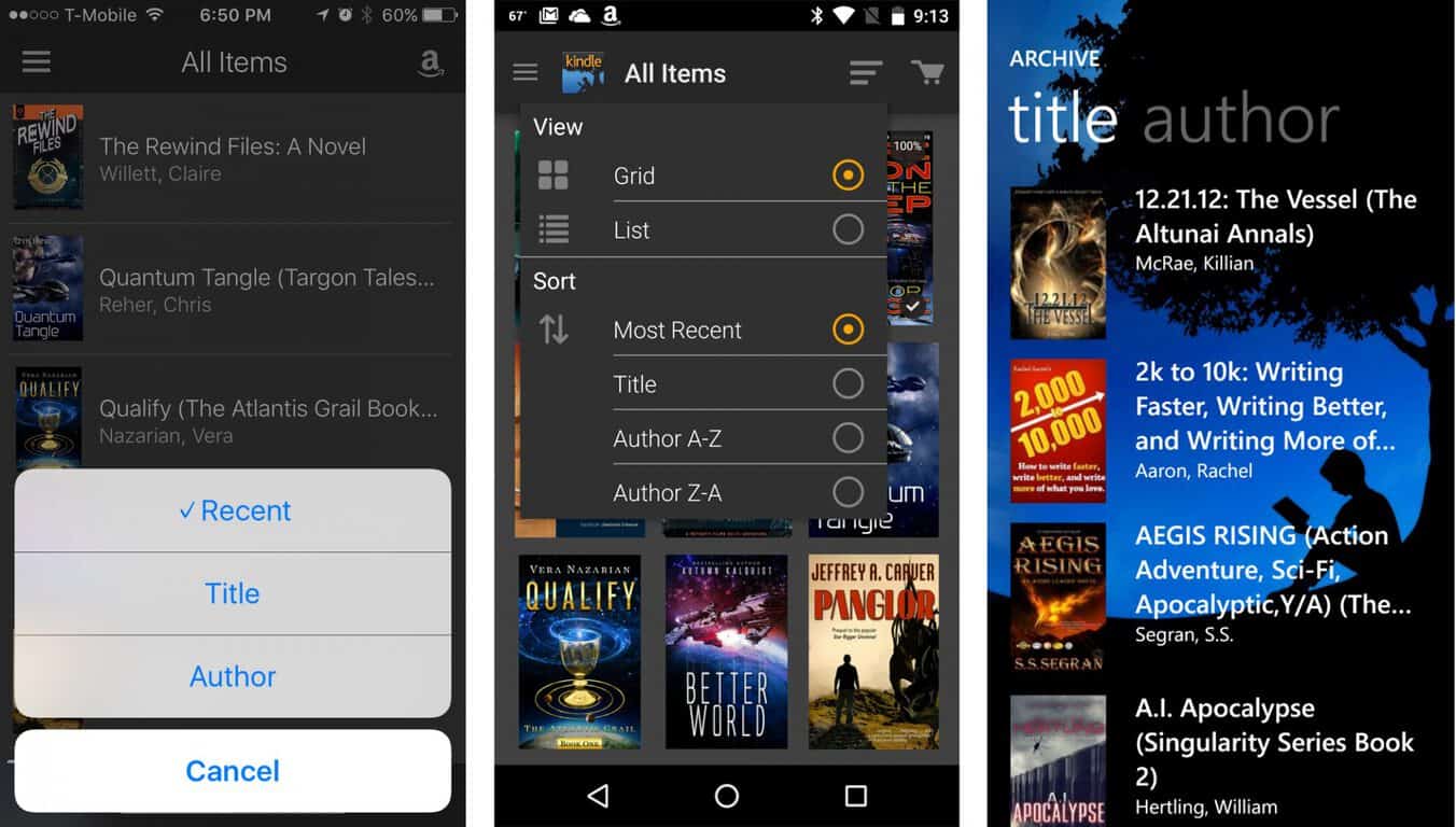 The iOS and Android apps support more options for viewing the list of available books (such as grid vs. list views), but the Windows phone app doesn’t even support sorting your cloud collection by most recent. This makes selecting new books from within your complete library unnecessarily difficult.