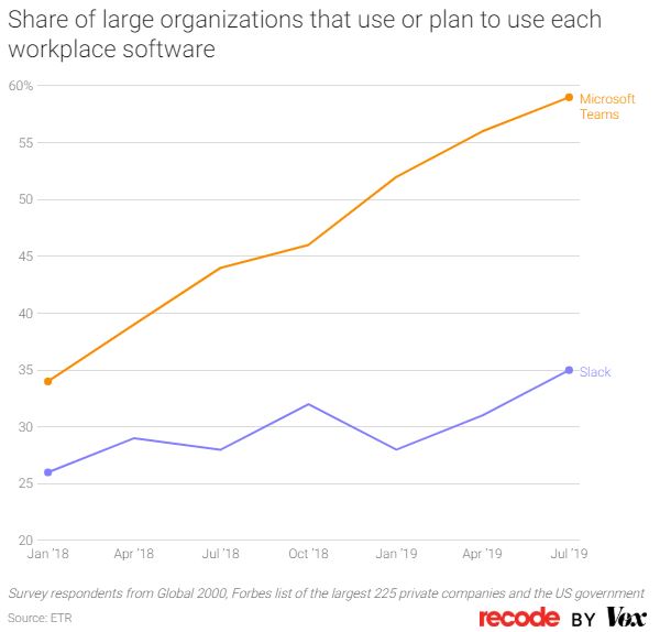 - Large companies that are new to Slack and Teams (Image via Recode)