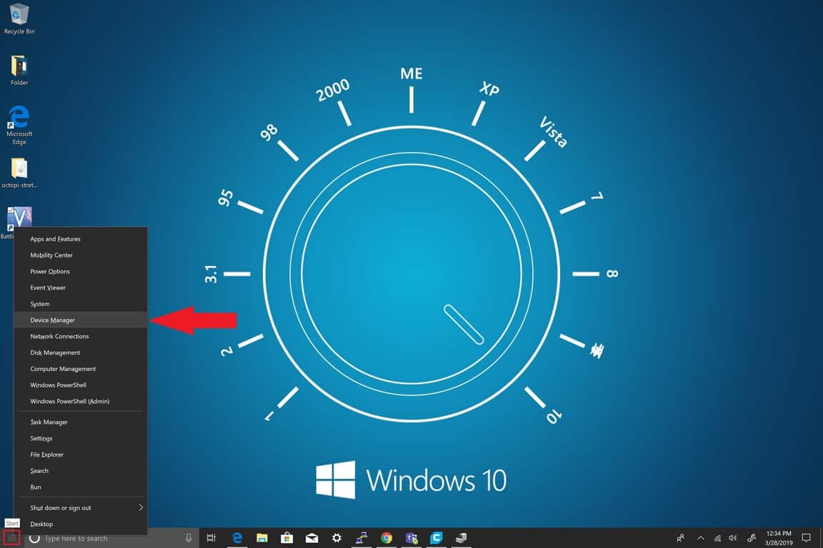 - Right-click the Start menu in Windows 10 and choose Device Manager from the list.