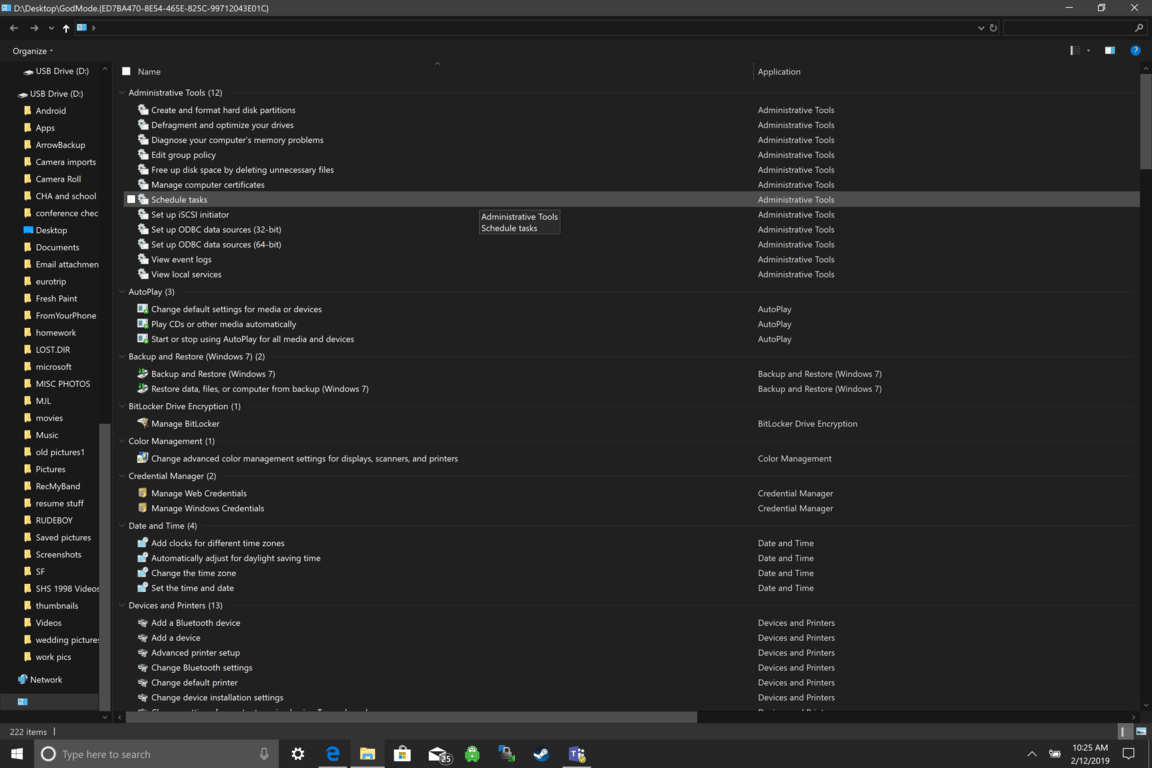 There’s nothing amazing that you can’t find by using the control panel in Windows 10, but it’s nice to have all master control panel options you could possibly ever need in one folder.