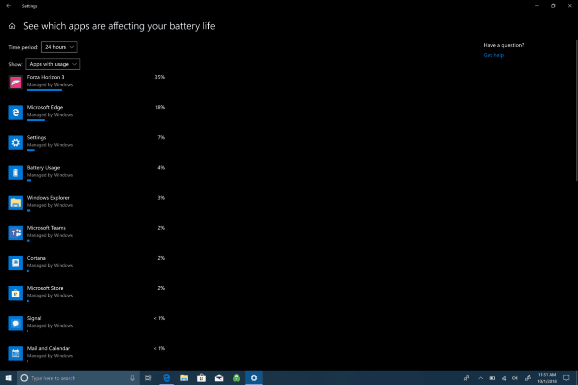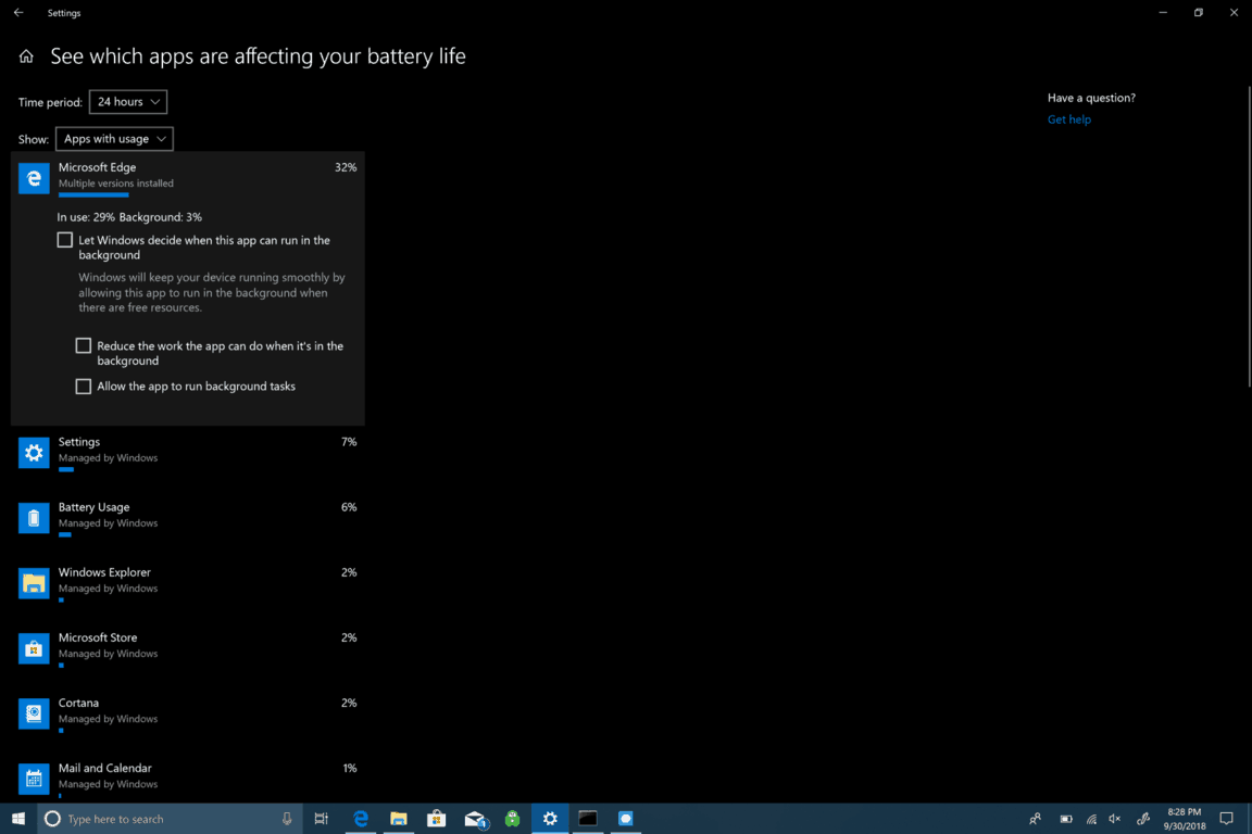 Check what apps are affecting Windows 10 battery life