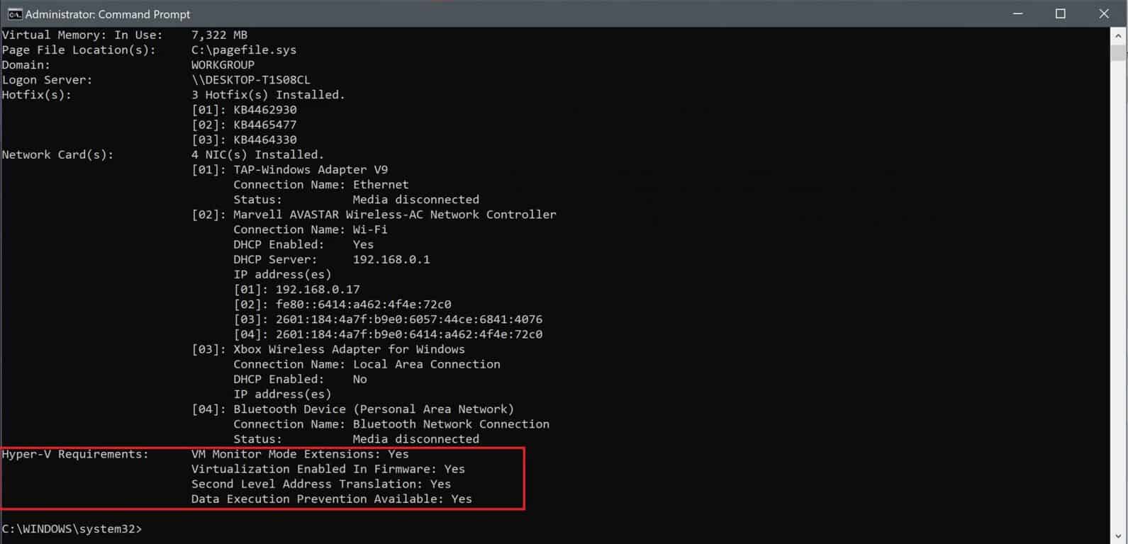 If the command displays “No” under Hyper-V Requirements, then your Windows 10 PC hardware doesn’t support this feature or you may have to enable these features manually in your system.