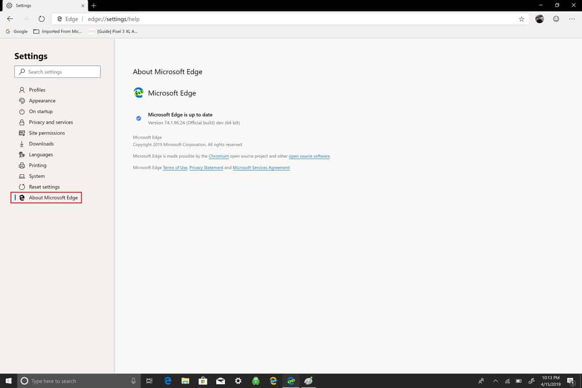 3. If your browser is up-to-date you will see the following screen, which depends on the Edge Insider Channel build you have installed.