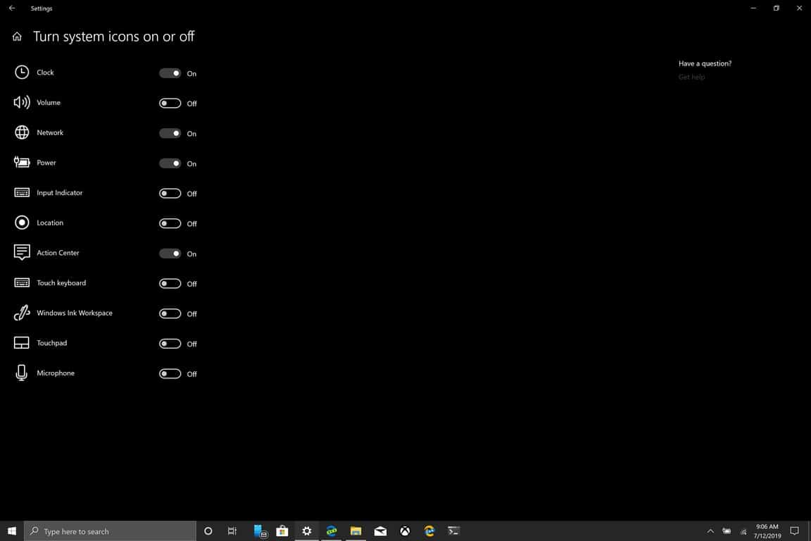 How to turn system icons on and off in Windows 10