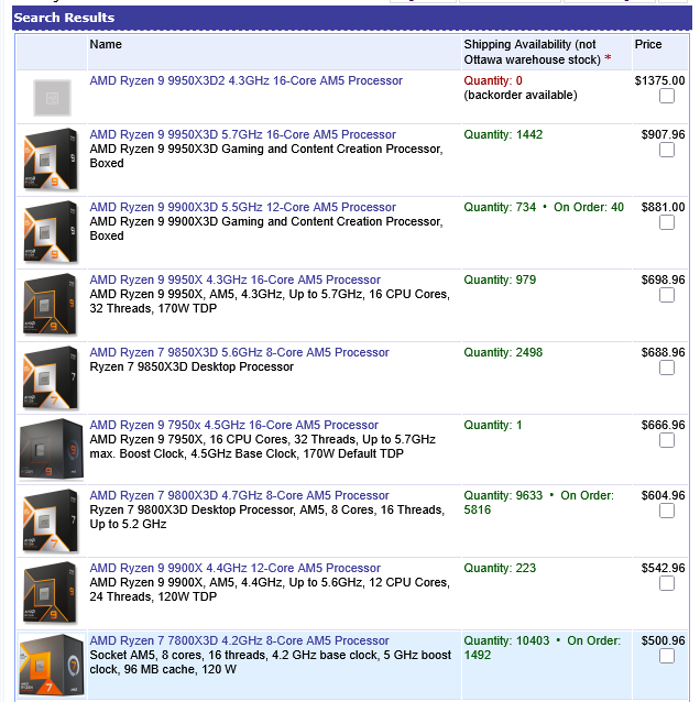 PC-Canada has listed (via X) the processor at CAD $1,373.99, which converts to roughly $984, while another Canadian retailer, ShopRBC, has posted a similar price at CAD $1,375, and both listings confirm that the chip is not yet available for purchase due to launch restrictions.