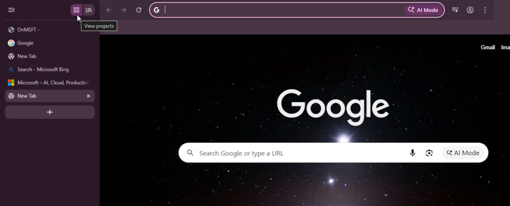The Projects panel is still under development and currently sits behind an experimental flag in Chrome Canary. Google is also testing different variations of the feature, including versions that show AI threads and versions that display only tab groups.