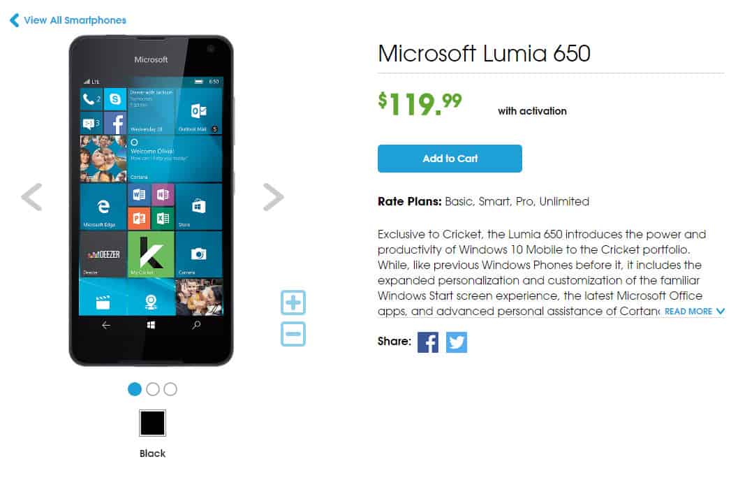 Further reading: Cricket Wireless, Deals, Lumia 640, Lumia 650, Microsoft, Windows 10 Mobile