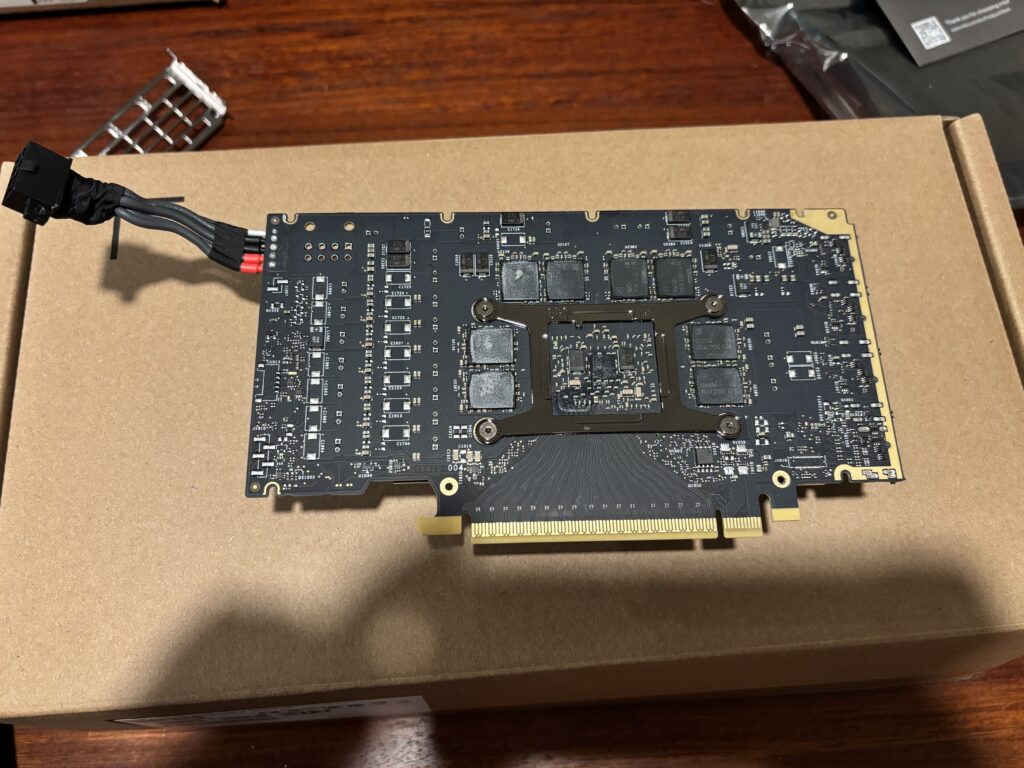 The images also confirm that the power cable is soldered directly onto the PCB, which is common in professional GPUs and accelerators where stability and reliability matter more than modularity.