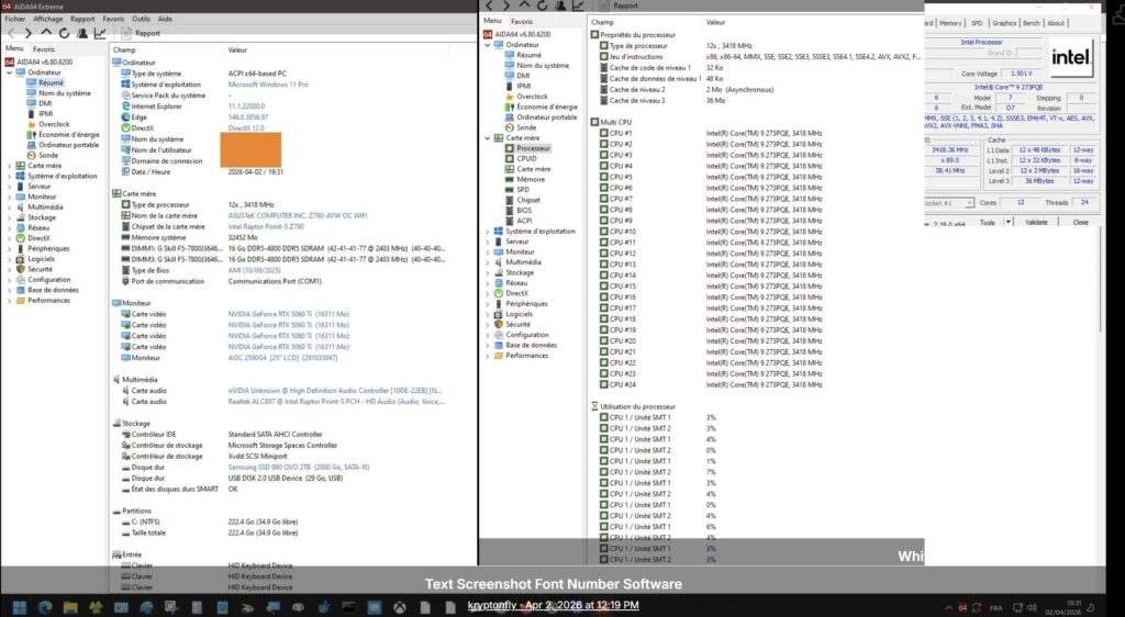 The Core 9 273PQE stands out because it uses a pure performance core design with 12 P-cores and 24 threads, running at around 3.4 GHz based on shared CPU-Z screenshots, and this configuration differs from Intel’s hybrid architecture seen in chips like the Core i9 13900K and 14900K that combine performance and efficiency cores.