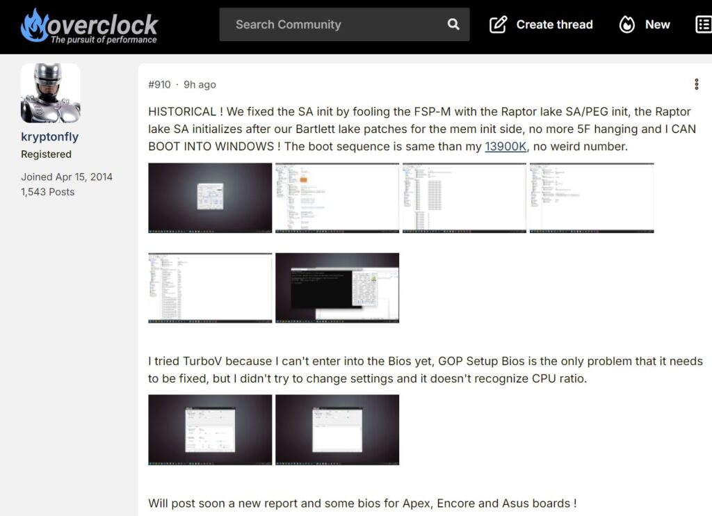 Overclock enthusiast Kryptonfly managed this breakthrough by tricking Intel’s firmware during early initialization, making the system recognize the Core 9 273PQE as a Raptor Lake CPU, which allowed the system to pass POST and load into Windows without triggering the usual 5F error code that blocks unsupported processors on these boards.