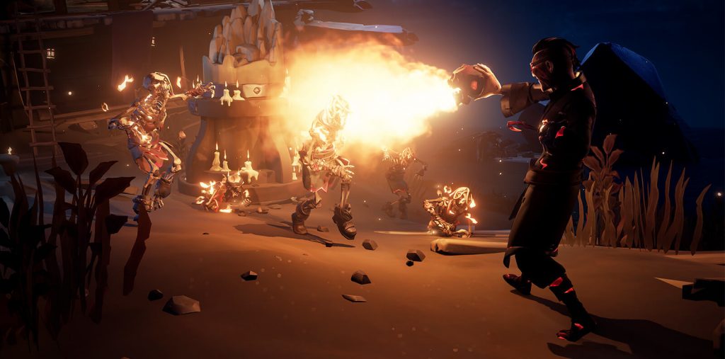 Ashen Lords can appear randomly during other Sea of Thieves voyages, or you can fight them specifically by searching for the fire tornados that mark their arrival. The Ashen Lords’ attacks include raining flaming rocks, summoning an ash cloud, and breathing fire. If you defeat an Ashen Lord, you will receive an Ashen Winds Skull, which allow players to use as flamethrower to set fire to ships and other Sea of Thieves players.