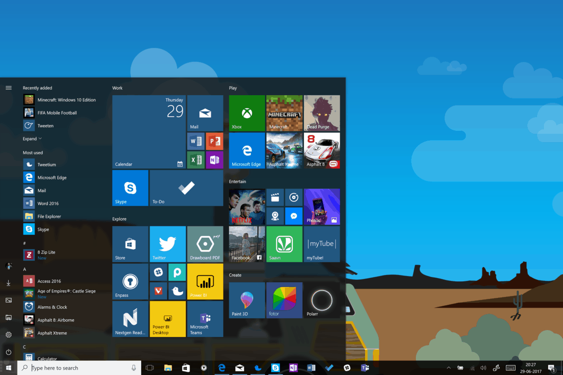 I personally find the Start menu a better place to organize and get things done in Windows. Thanks to the added benefits of live tiles, It’s much cleaner and concise than keeping applications on your desktop, and much faster and easier to find the things you need access to most.