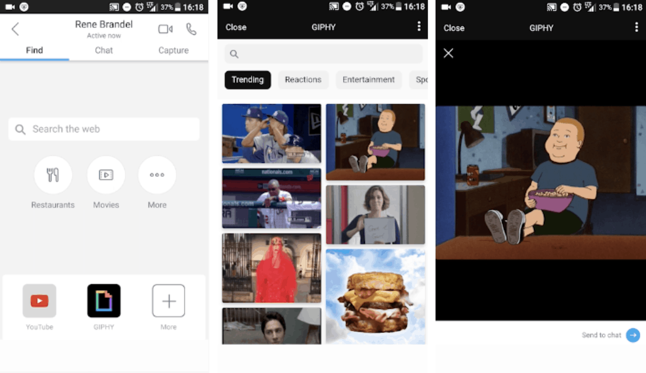 Later this year, the Skype team will roll out Skype Add-ins, a new feature that will let developers build their services directly into Skype. If you already tested the Skype Preview app on iOS or Android, you can see that these services can be accessed in any conversation by just swiping to the left panel. For now, only Bing, YouTube and Giphy are available for consumers.