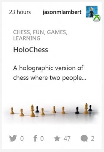 The blog post uses the example of HoloChess, which will require additional work to turn the typical 2D (or even on-screen 3D) chess implementation into a good augmented reality experience. Just intuitively, it’s clear that creating a chess game that can be manipulated in a fully 3D environment will require additional artwork and attention to detail that typical chess games don’t require.
