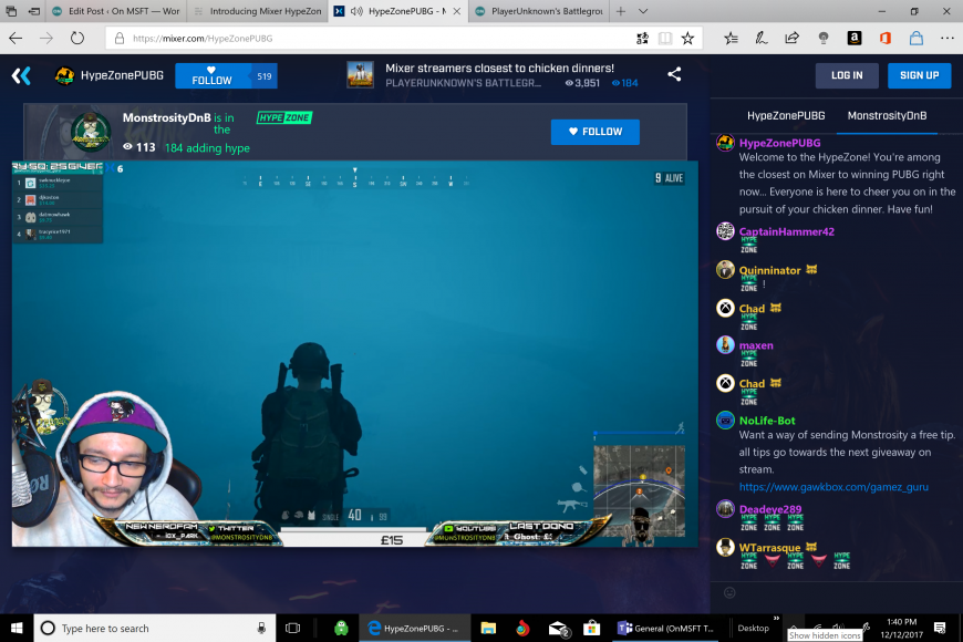 The HypeZone PUBG channel is currently in beta, and Mixer hopes to provide some great features for game streamers and game viewers in the future. As noted by Mixer, the HypeZone PUBG will be the must-see Mixer channel, offering some amazing PUBG action: