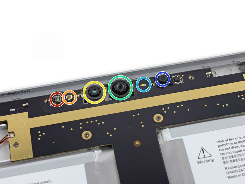- There are tons of sensors up top on the screen, to support Windows Hello. The usual camera and microphone are there, but also an infrared emitter and an infrared camera.