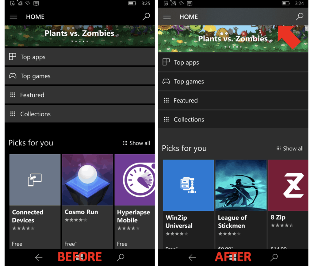 After a bit of experimentation on the PC side though, Microsoft now seems ready to give the Windows 10 Mobile version of the Windows Store some Fluent Design touches, too. As spotted by the Twitter account ChangeWindows, the version 11708.1000.87.0 of the app, which is now rolling out to Windows Inisders on the Release Preview Ring, brings a new transparent header to the mobile app.