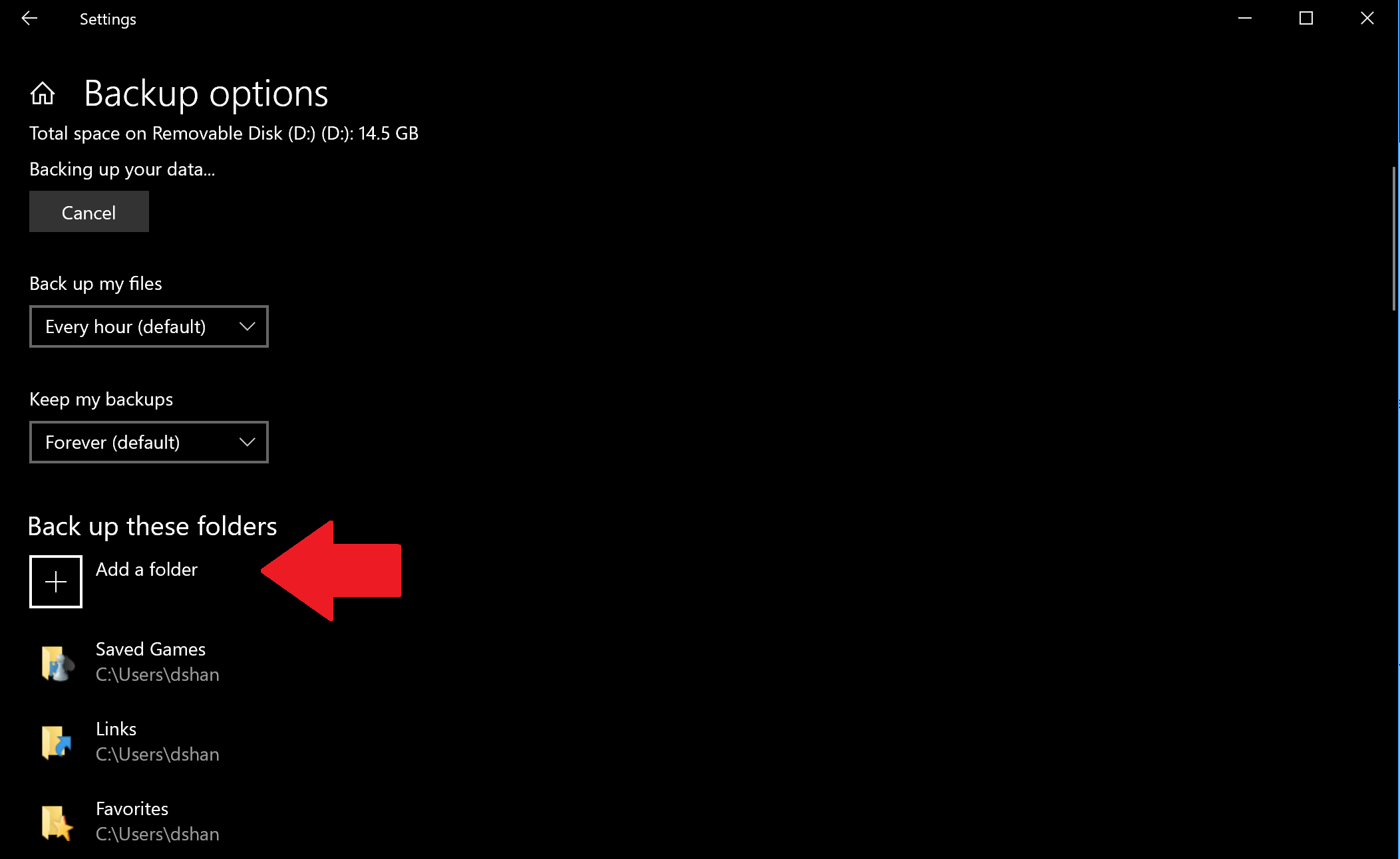 Once added, your custom folder will be saved and added to your next backup. Keep changes you make to your files in mind when backing up files in Files History because Windows 10 will backup and store different versions of the same files.