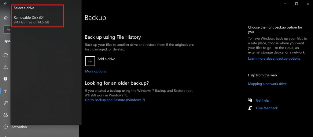 It is important to note that you can also choose to open File History by going to Settings > Update & Security > Backup and choose More options. At the bottom of the page, choose Restore files from a current backup to open the File History page and repeat steps #2 and #3.