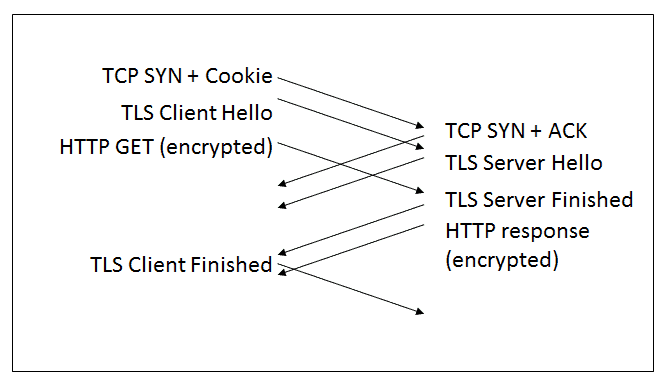 Afterward, the TCP Fast Open procedure inserts an empty cookie when a user visits a site for the first time. This empty slot requests a cookie to return from the server, which will then be used every time the user visits the site after that. While Fast Open remains enabled, the data with the cookie can be sent alongside the TLS Client Hello and initiate the handshake sequence simultaneously. This leaves only 1 RTT left before the data moves forward to the server.