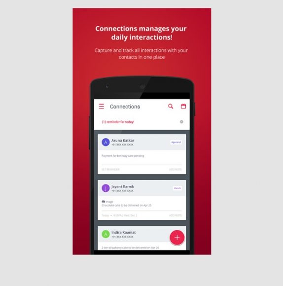 Connections helps you better manage your relationship with your contacts – be it friends, family, customers, vendors or suppliers. It helps you capture and surface important information so that you can be organized and prepared. Notes, Reminders, Categories & Sharing, are just a start – but we aim to keep listening to feedback and improving the app so that we provide enough context to all your interactions.”