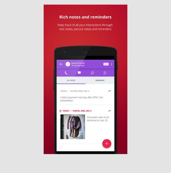 - Share notes with context – notes go with the respective contact information like name and phone number